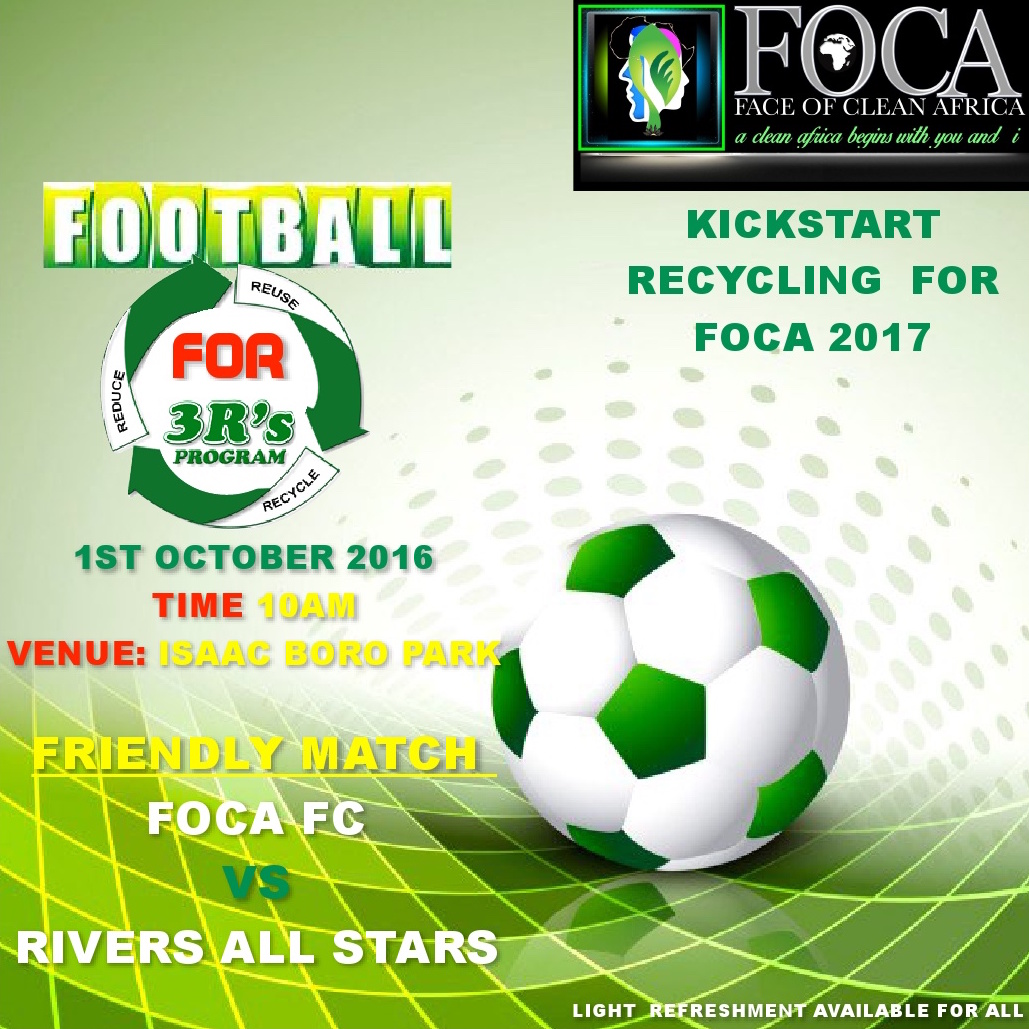 As part of events marking the 56th Independence Anniversary of Nigeria, Face of Clean Africa (FOCA) is organising a friendly football match between FOCA and Rivers All Stars FC.