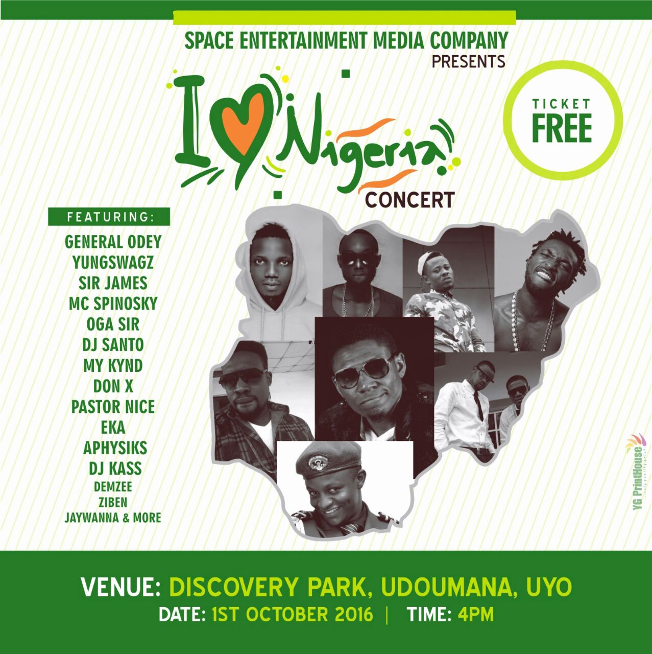Come 1st October, Nigerians will gather at discovery park Uyo for the mother of all concerts tagged ‘I Love Nigeria Concert”. It will feature performances by lots of artistes, Comedians and dancers in the Niger Delta. According to the organiser, Asteroid Bassey of AKBC TV, the free event is meant to show that as a people, we can weather the storm together for there ain’t no other country like ours”. There will be representatives of various ethnic groups in Nigeria at the event. Follow Asteroid on twitter @asterizzle